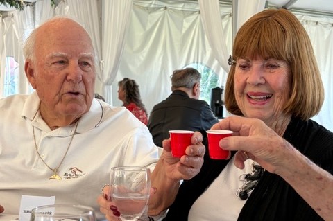 Jim's sons, Todd and Guy, invited those WHS classmates who meet for dinner every other Monday to join a Celebration of Life event held last night at the El Dorado Golf Course tent facility. There were 11 of us in attendance. They provided a wonderful buffet dinner and showed slides and videos of Jim and his family. His two sons and three grandchildren shared their warm memories of their dad and grandfather.