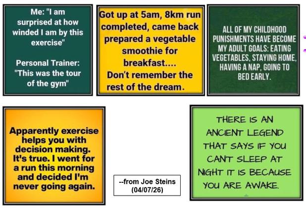 Apparently, exercise helps you with decision-making. It's true. I went for a run this morning and decided I'm never going again.